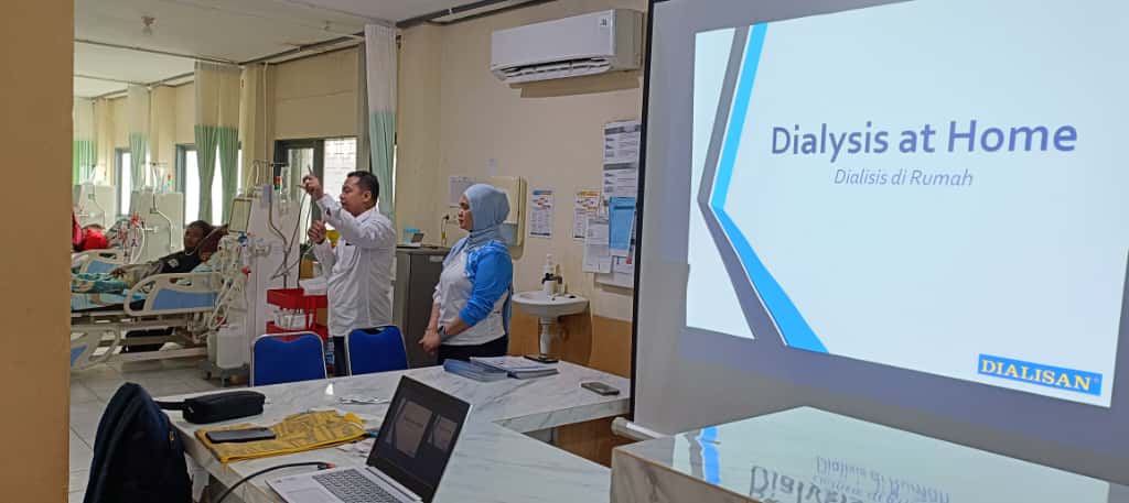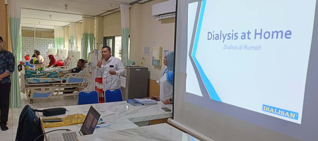 Selanjutnya disampaikan pula edukasi terkait produk CAPD dari Ns, M. Wendi, S.Kep selaku Peritoneal Dialysis Nurse dari PT. Sanbe Farma tentang Tata Cara Dialisis di Rumah. Beliau menjelaskan tentang tahapan apa saja yang diperlukan agar para pasien gagal ginjal dapat mandiri di rumah dengan menggunakan produk CAPD.