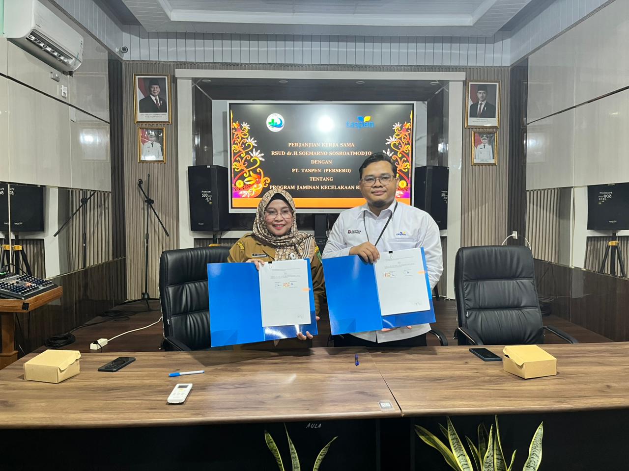 Perjanjian Kerjasama ini terselenggara dalam rangka optimalisasi penyelenggaraan program Jaminan Kecelakaan Kerja (JKK), maka PT TASPEN (Persero) KC Palangka Raya menjalin kerjasama tertulis dengan RSUD dr. H. Soemarno Sosroatmodjo Kuala Kapuas dalam memberikan jaminan perawatan kepada peserta TASPEN yang mengalami kecelakaan kerja.