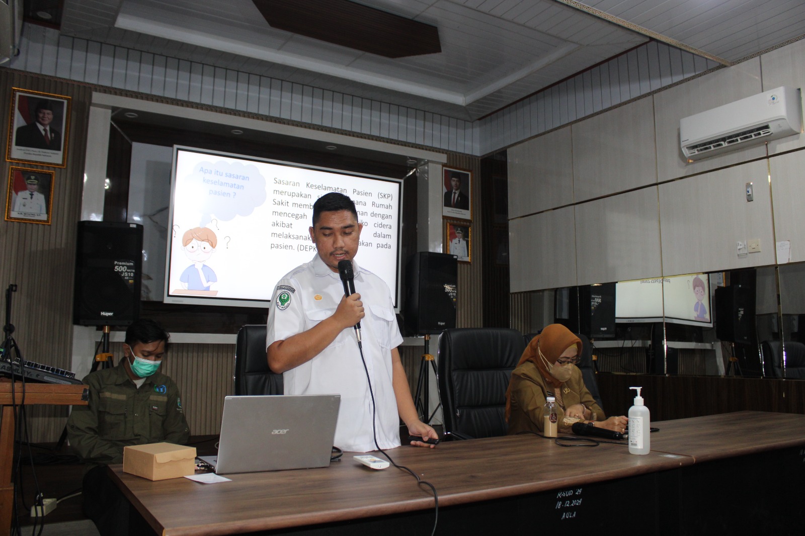 Kegiatan ini dibuka oleh Perwakilan Direktur RSUD dr. H. Soemarno Sosroatmodjo Kuala Kapuas, yaitu Kabag. TU, Taufik, SE, MM, Kabid. Pelayanan Penunjang, Yuli Antie, SE, MM, Kabid. Keperawatan, Karolina Kamala, S.AP, MA, Kasubbag. Umum Dan Kepegawaian, Siti Halimah, S.IP, MM, didampingi stafnya, diisi materi oleh perwakilan dari Pokja-pokja Akreditasi Rumah Sakit antara lain dari Pokja PPI (Pencegahan dan Pengendalian Infeksi) oleh Mega Selvia, S.Kep, Ns tentang Standar dan Aturan PPI di Rumah Sakit, Pokja KE (Komunikasi Efektif) oleh Popo Subroto, SKM, M.I.Kom, yang memberikan edukasi tentang Komunikasi Efektif di Rumah Sakit, , Pokja PKPO (Pelayanan Kefarmasian dan Pelayanan Obat) oleh April, S.Farm, Apt, dan Pokja SKP (Sasaran Keselamatan Pasien) oleh Tri Lesmana Putra Pailin, S.Kep, Ns